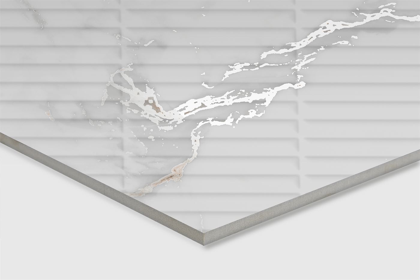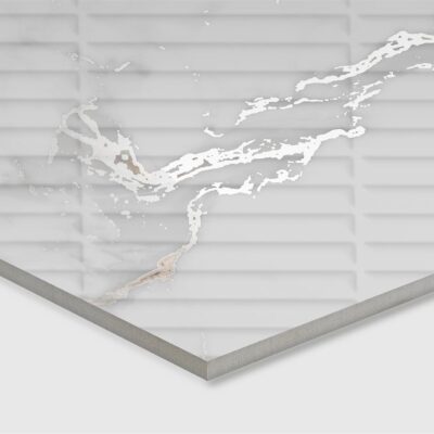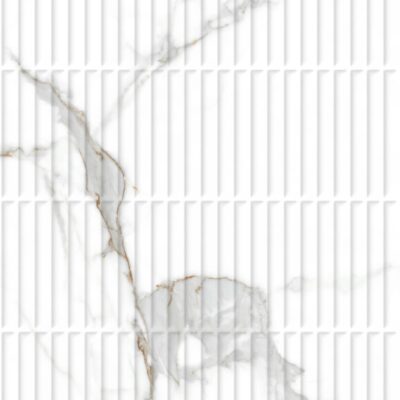 Благодаря новой технологии carving pro, поверхность керамогранита удивляет своей невероятной белизной, а эффект рельефа, напоминающий изысканные мраморные прожилки, привносит в интерьер глубину и динамику, меняясь под воздействием света. Поверхность воспроизводит фактуру кирпичной кладки, придавая реечный эффект, а прожилки мрамора с карвингом, переливающиеся при различном освещении придают индивидуальность пространству.